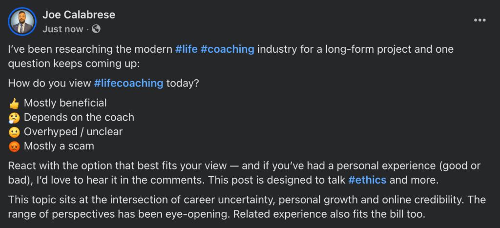 This increases the risk of client dissatisfaction or harm, whether intentional or unintentional. This framework, as well as audience or client variance, helps explain why individual experiences with coaching can differ so sharply within an industry that remains largely self-regulated.